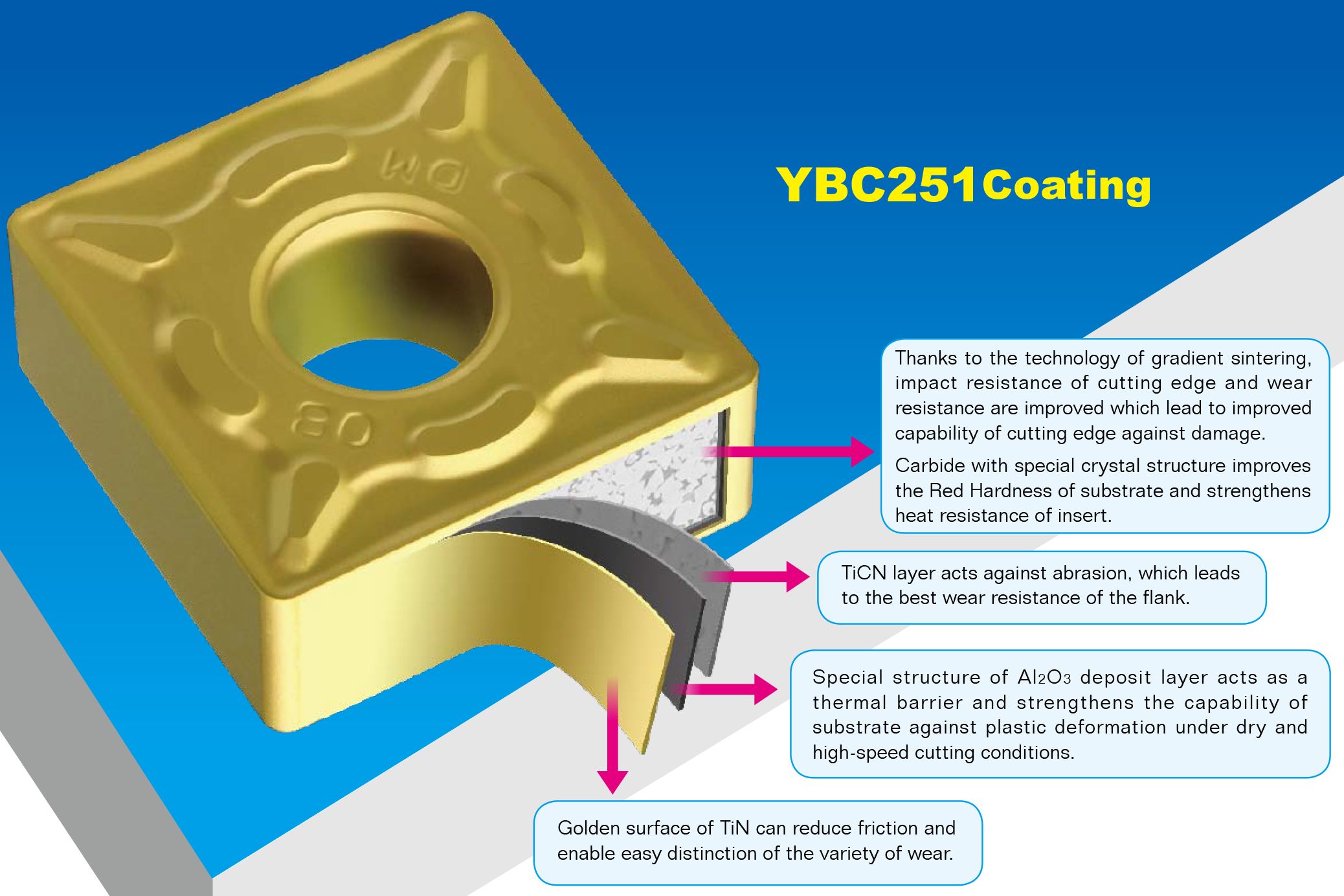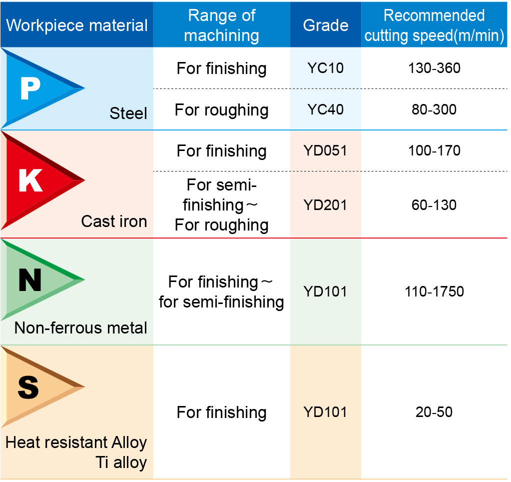 Uncoated cemented carbide grade is widely used for machining of non-ferrous metal, high temperature alloy, etc. It is economical and can be universally applied.